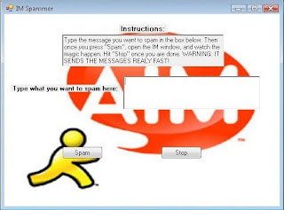 This software can spam the MSN with the characters you type. Type the message in the box to spam and click Spam and see the live ruin showing. It will send unlimited messages until you hit Stop. When I tested this on my computer, it caused my PC to hang and ultimately, I had to restart my system. Enjoy !